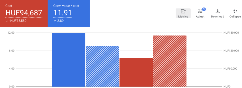 The increase in CPC was more significant, but the experiment confirmed that by selecting only top-performing products, we can achieve a better ROAS. The higher CPC was caused by removing the original campaign limit. If needed, CPC can be regulated again by setting a maximum CPC through bidding strategies.