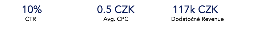 Priemerné CPC: 0,5 CZK (10x nižšie ako nastavené maximum)